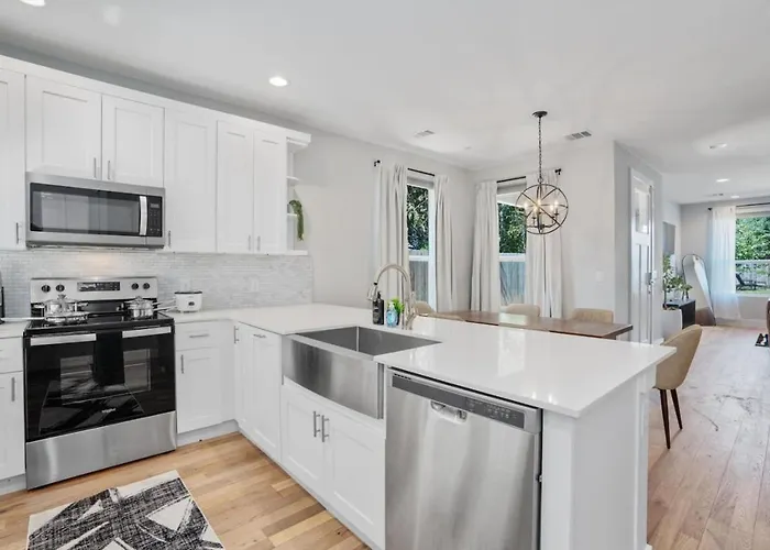 Situated in the vibrant heart of Austin, Mins To Acl - Downtown - Formula 1 offers an exquisite blend of luxury and convenience, making it an ideal retreat for both leisure seekers and avid motorsport fans. The villa boasts sleek, modern architecture, complemented by thoughtfully designed interiors that exude warmth and sophistication. Guests can indulge in a relaxed atmosphere that is just a short distance from some of the city's best attractions, including the iconic Zilker Zephyr Miniature train, located a mere 13 km away.